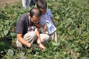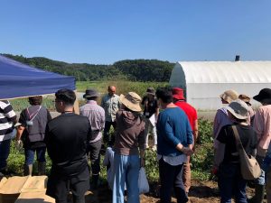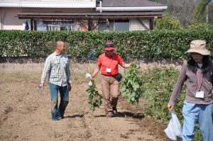 畑では、就農10年目の有機農家・高橋さんに教わりながら、生落花生を収穫🌾