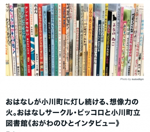 記事中で紹介されているのはおはなしサークル・ピッコロさんメンバーであり、小川町図書館元副館長の神原さんです。 もー こんな素晴らしい図書館とお話サークルの活動がある小川町って素敵!と心から思った記事です。ぜひお読みください。